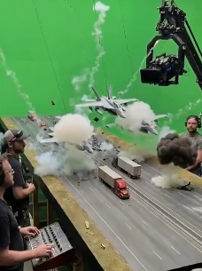 Les miniatures no actuen soles. Es combinen amb fons verds (cromes), cosa que permet als creadors de contingut retallar la maqueta amb precisió i situar-la en qualsevol entorn real, com el cel de Teheran, el port de Beirut o els carrers de Gaza. Aquesta tècnica, encara que artesanal, continua sent preferida per directors com Christopher Nolan pel "pes" visual que aporta. En la propaganda de guerra, aquest realisme físic pot ser decisiu per viralitzar un succés fals.